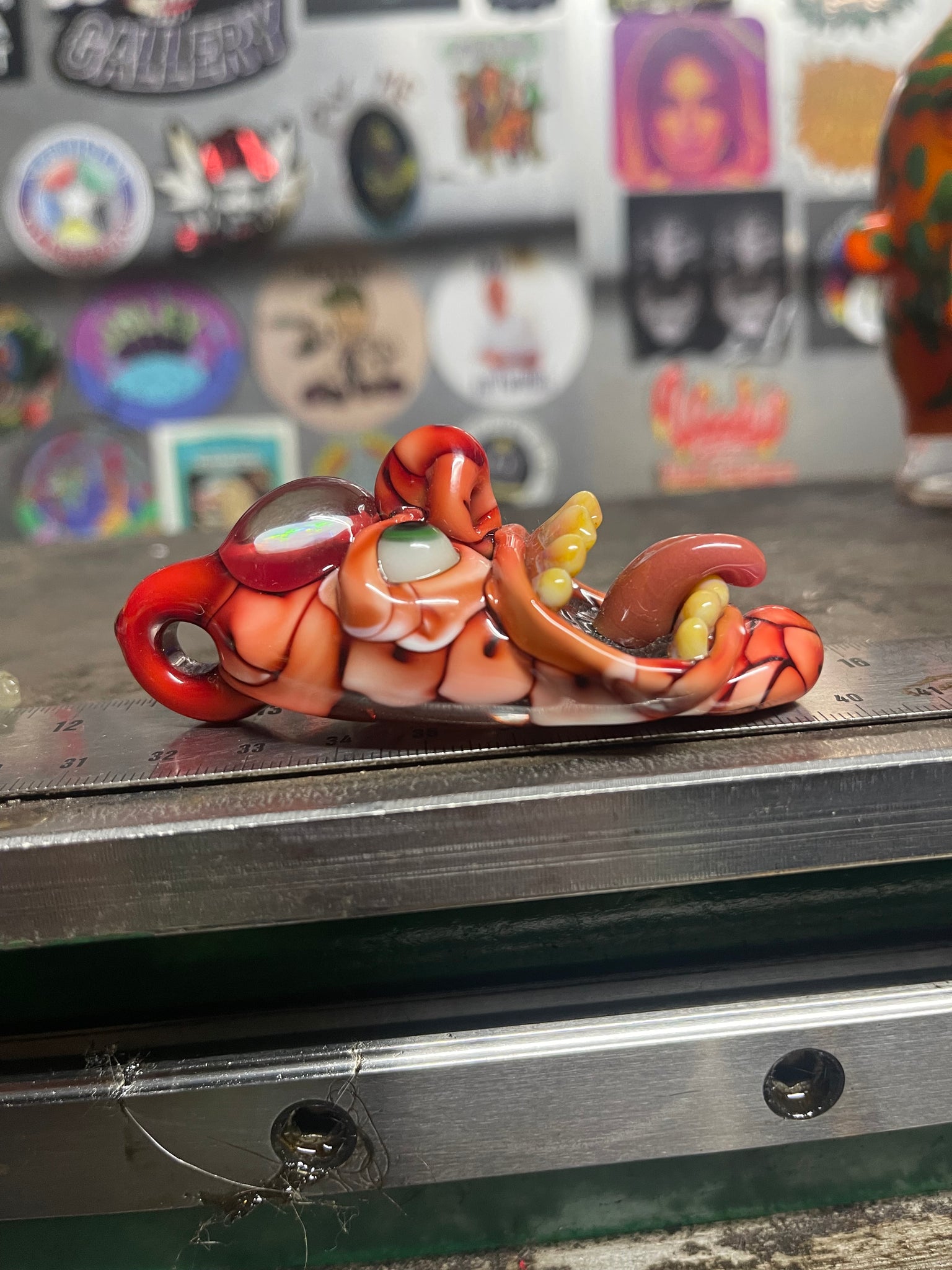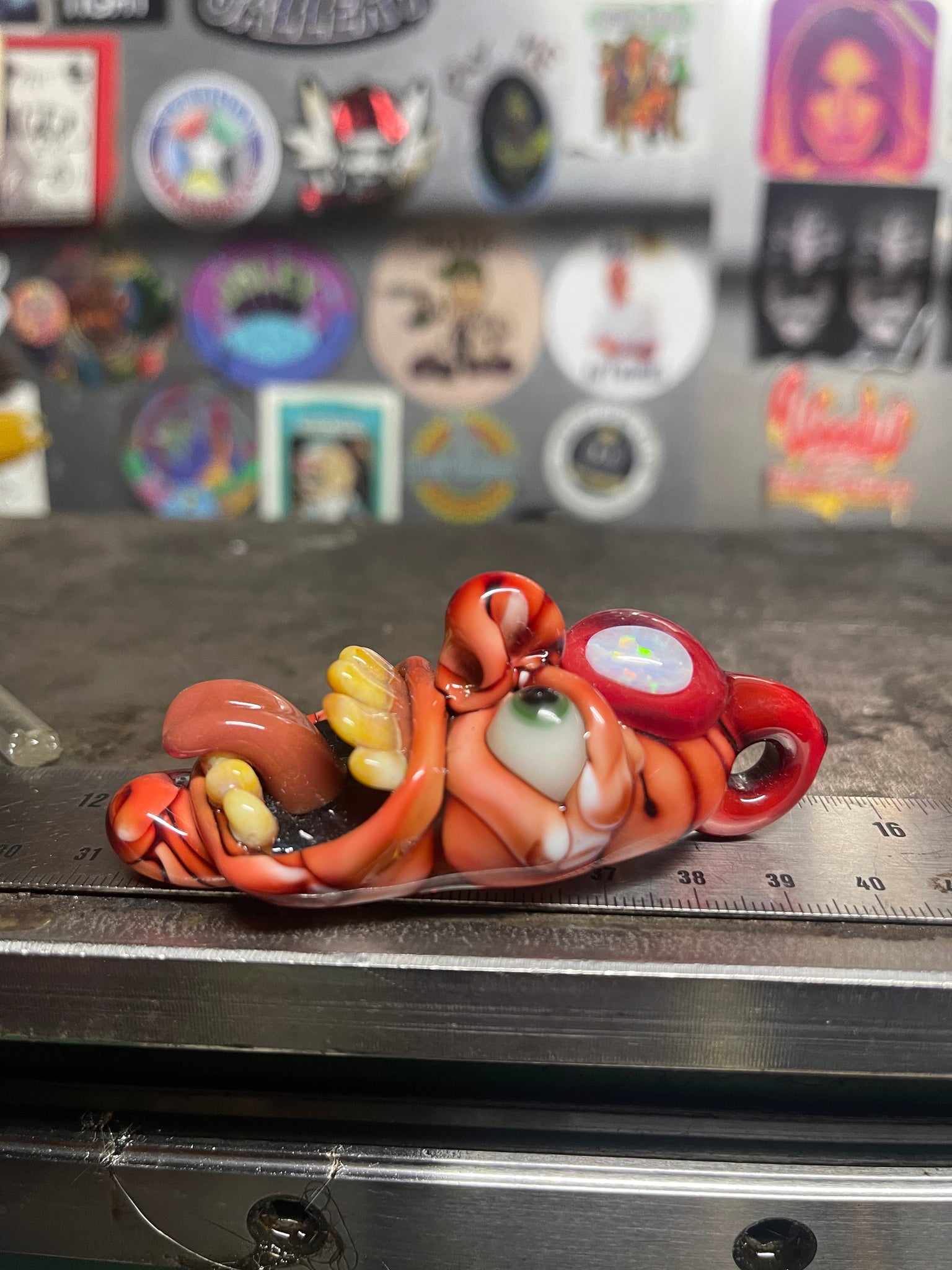 When you see these in real life it shows you the deep bloody depth of the internal multi layer core tech that gives off the effect of guts or brains. I always had a weird morbid appreciation to gore and guts and these hit a certain spot for me. The opal is a big fat fat 12mm hand picked by me and gives off insane glows of fire. Comes ready to wear out the pack on an adjustable 550 paracord.